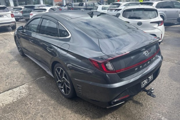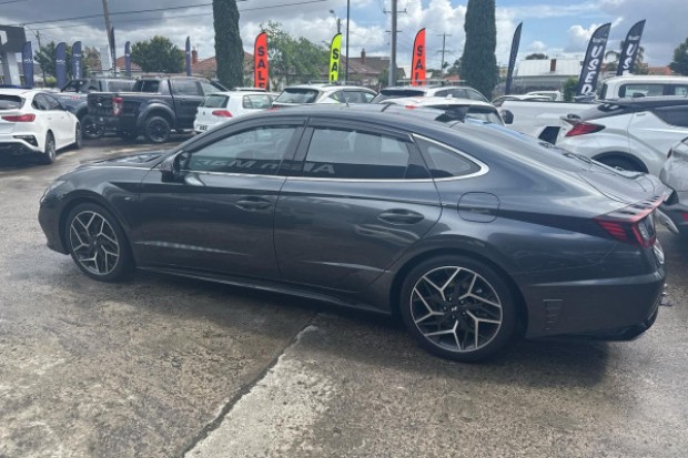 Step into sophistication with the 2022 Hyundai Sonata N Line, a medium sedan that artfully combines style and performance. Its sleek Nocturne Grey exterior hints at the refined engineering beneath, while the black trim interior offers a modern and comfortable space for you and four passengers.This used gem is powered by a spirited 2.5-litre 4-cylinder engine, ensuring every journey is infused with dynamic energy. The 8-speed DCT transmission provides seamless gear shifts, making city driving or highway cruising an effortless pleasure.